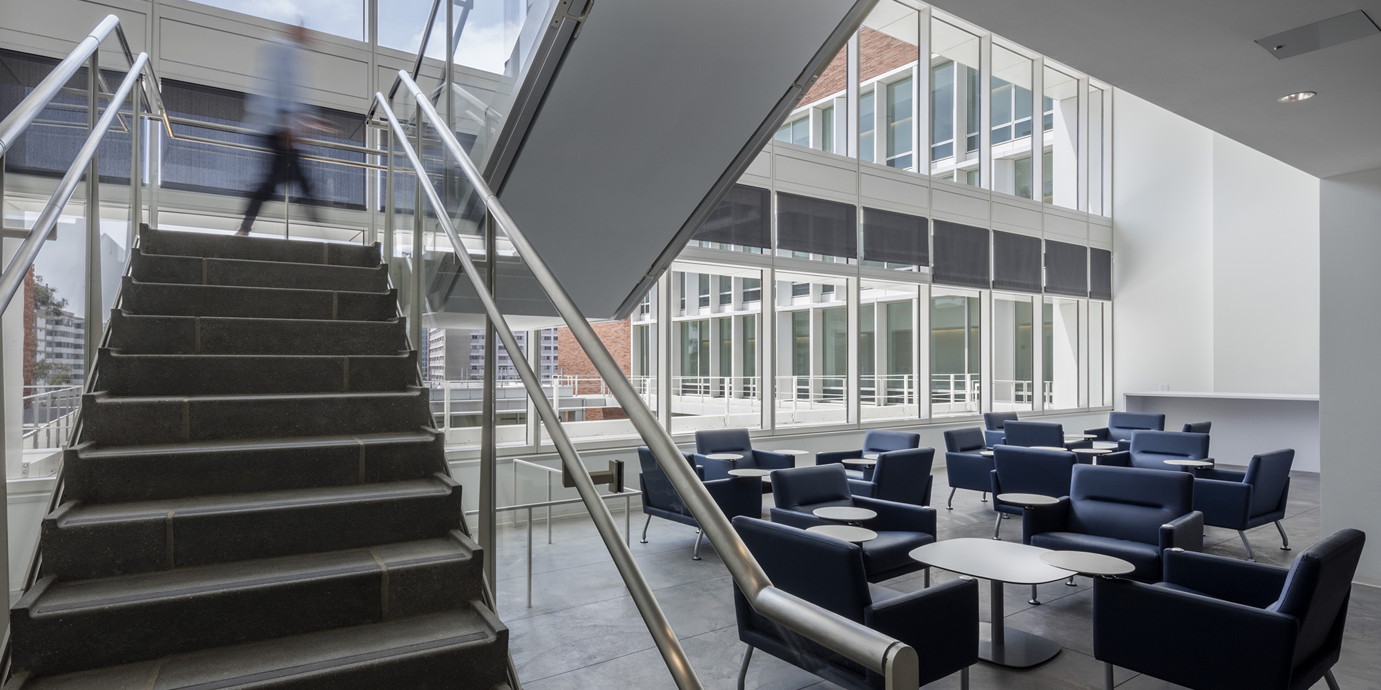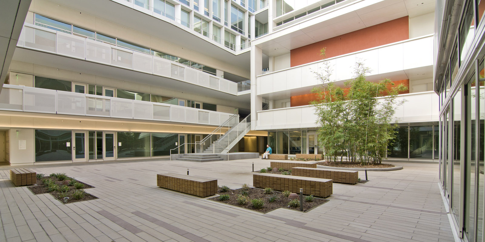 The building includes formal learning rooms with a 300-seat lecture hall, two 200-seat multipurpose rooms, case study rooms, teaching labs and seminar rooms. The building contains a public courtyard, faculty offices, offices for the Dean of the Medical School and student oriented spaces. The project was built immediately adjacent to an operating medical building and two parking structures.