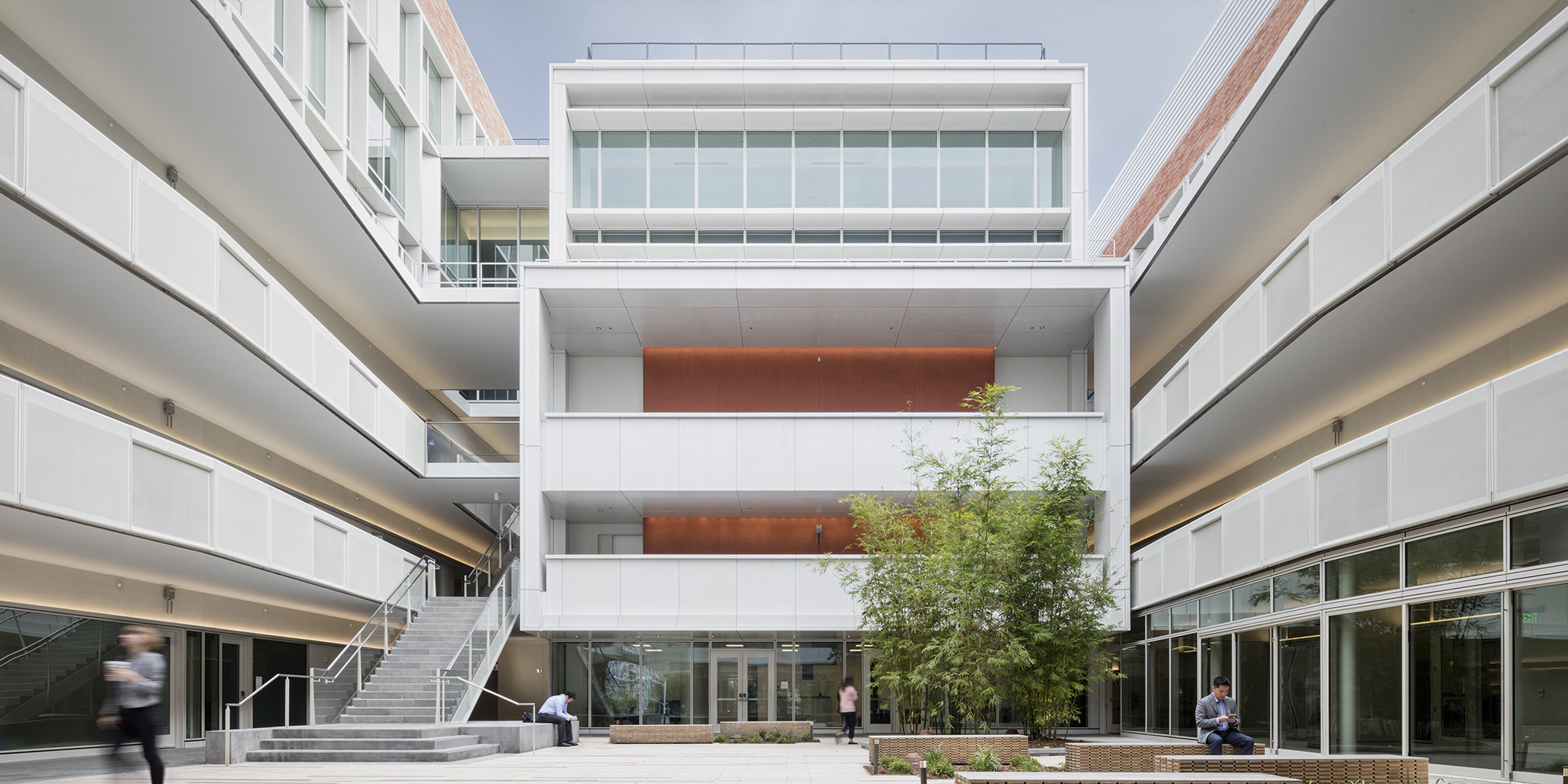 Designed in partnership with SOM architects for the School of Medicine Geffen Hall, formerly known as the Teaching & Learning Center for Health Sciences, is a 120,000sf, six-story campus building, containing learning and support spaces, lecture halls, common areas, classrooms, problem-based learning rooms, student amenities and faculty offices. The building structure is conventionally reinforced, poured-in-place concrete with some post-tensioned elements.